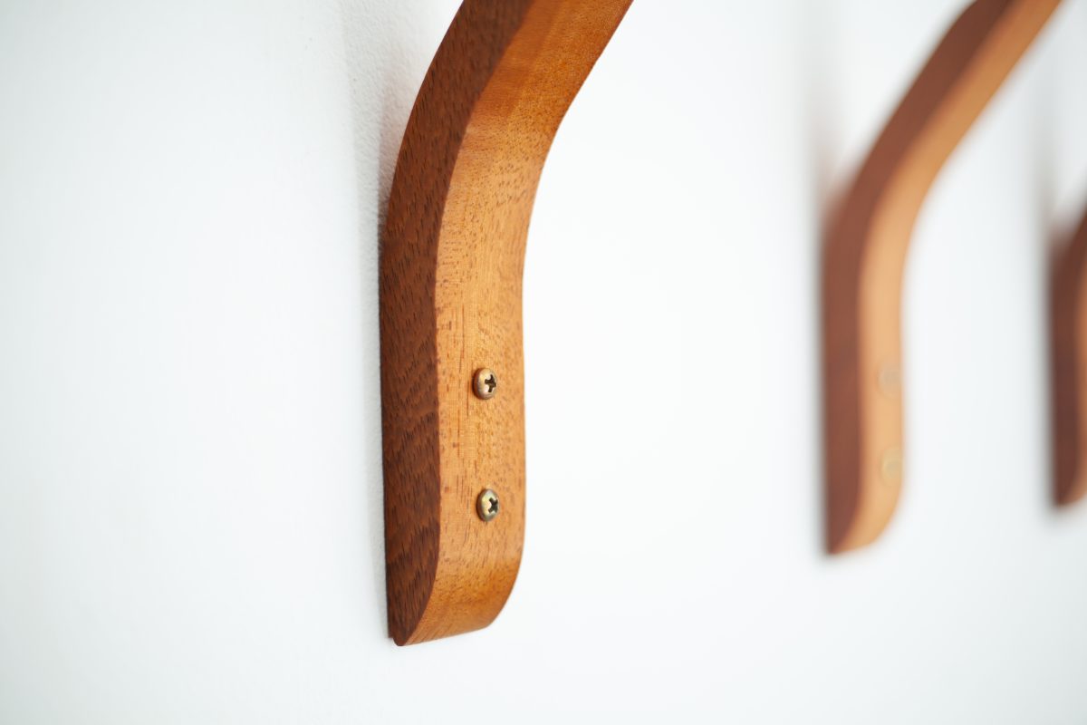 A dimensão compacta também facilita a instalação de vários ganchos lado a lado, criando um conjunto de cabideiro de parede de madeira modular, elegante e personalizável.